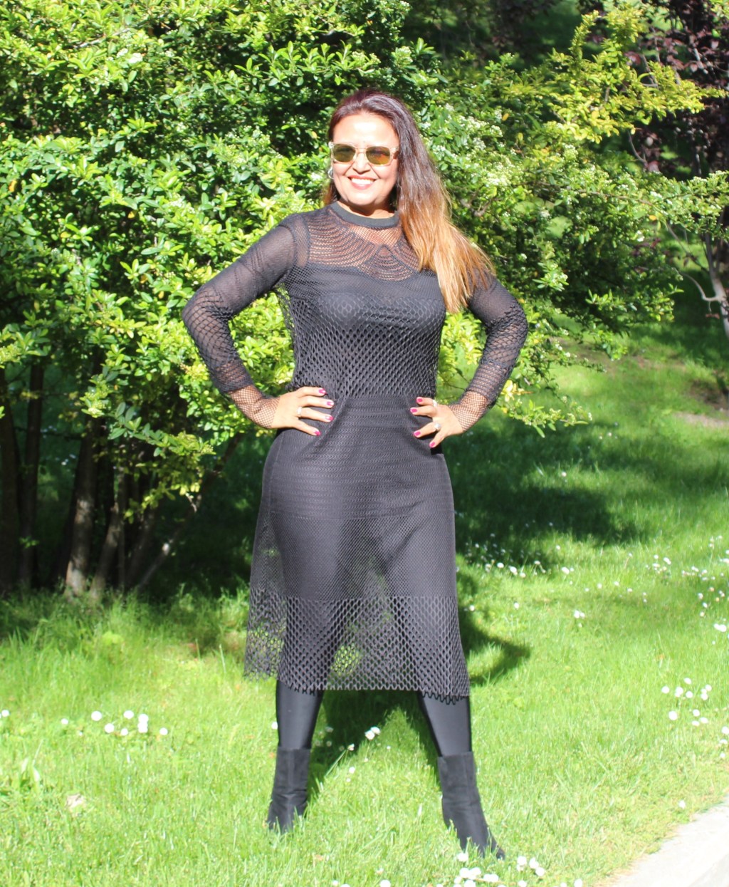 Llevo un vestido transparente en tela de maya de la tienda Lefties…..