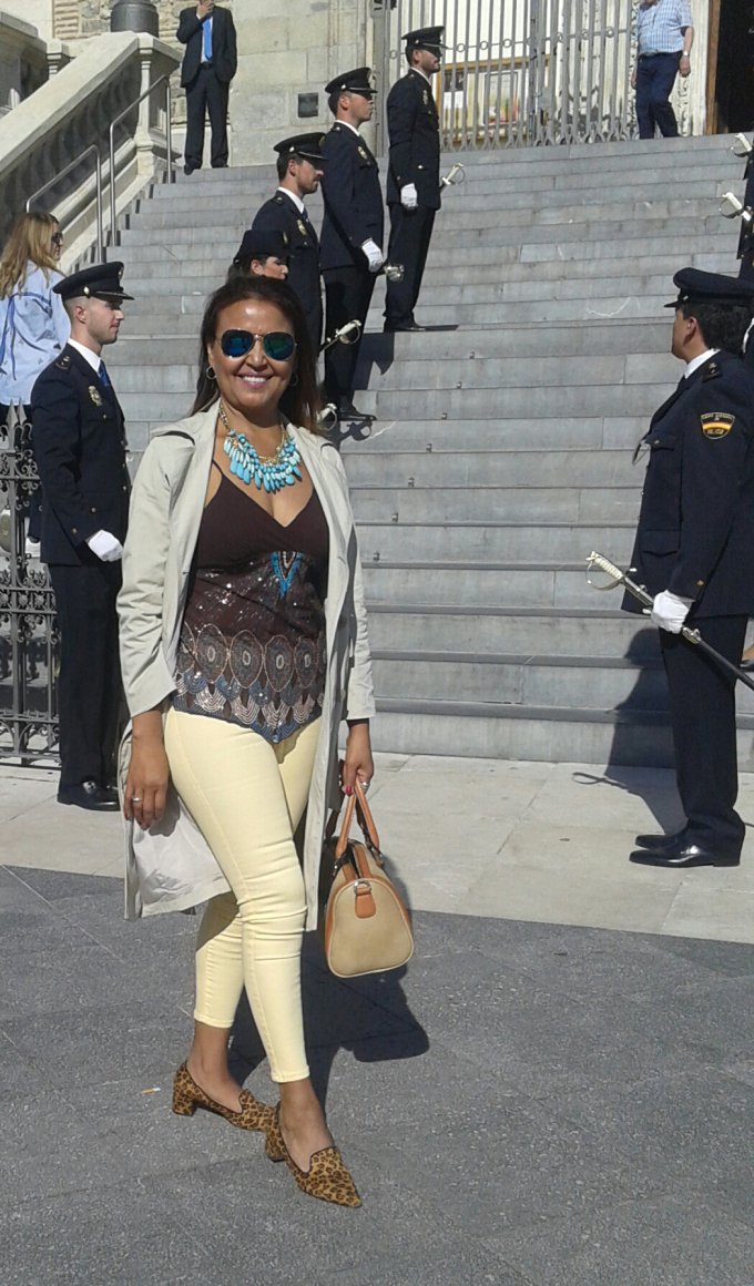 Zapatos leopardo tacón cuadrado, y para terminar mi atuendo una gabardina beige.