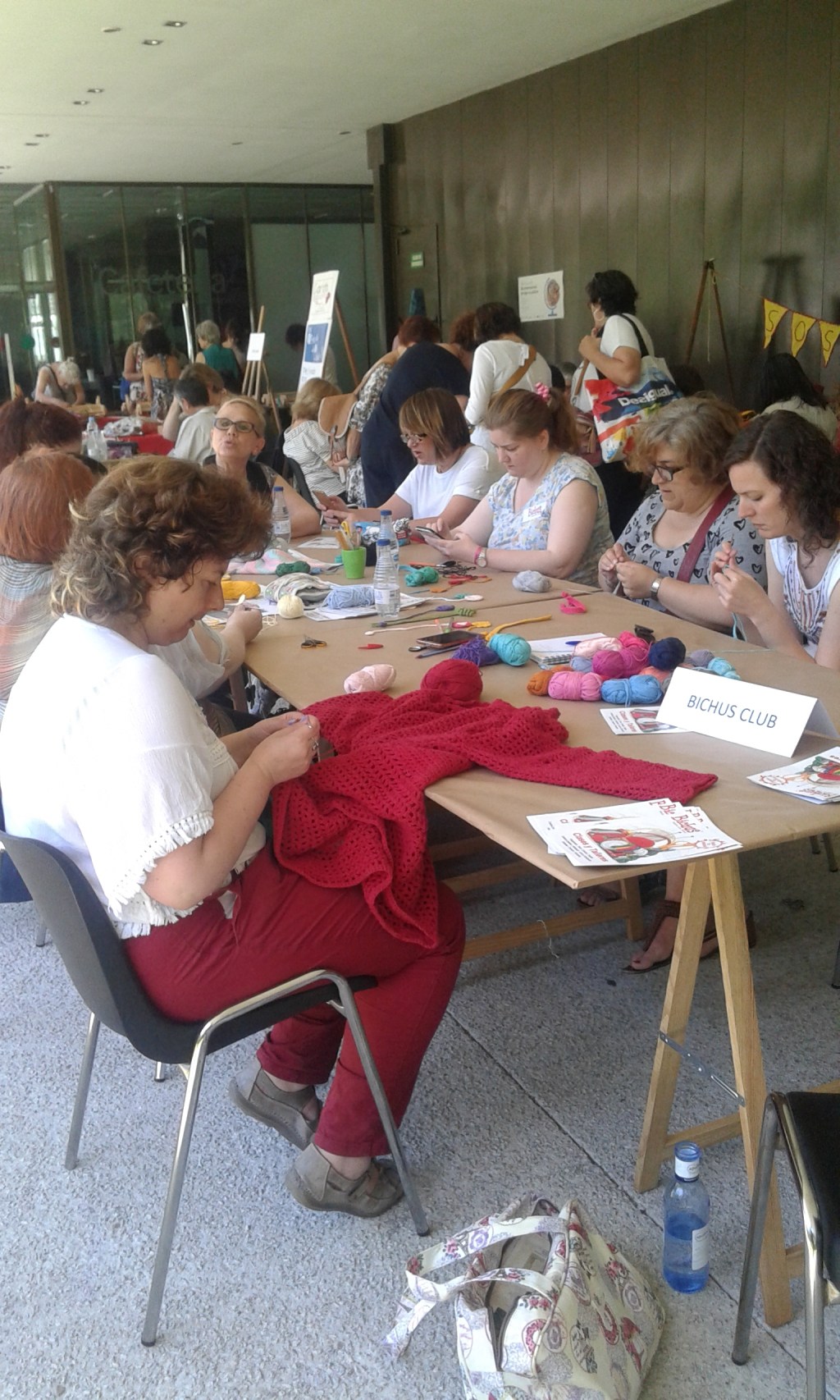 Ayer 10 de junio, tuve la oportunidad de visitar el Museo del traje de Madrid, donde se celebro el día internacional de tejer en público. Fue un tiempo estupendo, incluso participaron los niños en las diferentes actividades que se programaron para disfrutar los talleres en familia.