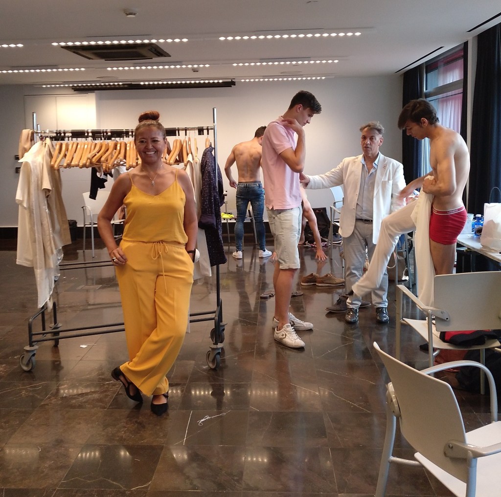 Compartí camerino con los modelos, ayudando a dar los últimos retoques.