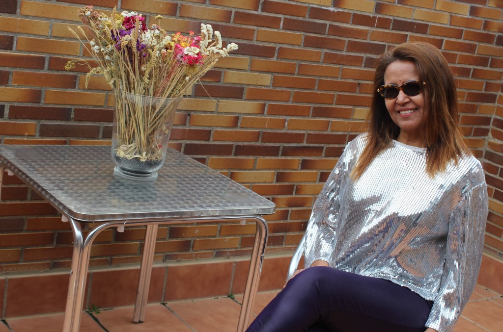 Para esta reunión con amigas elegí un look relajado y cómodo. Una blusa plateada que realzo mi look, que combine con unos leggins de color morado y unos zapatos destalonados de color blanco.