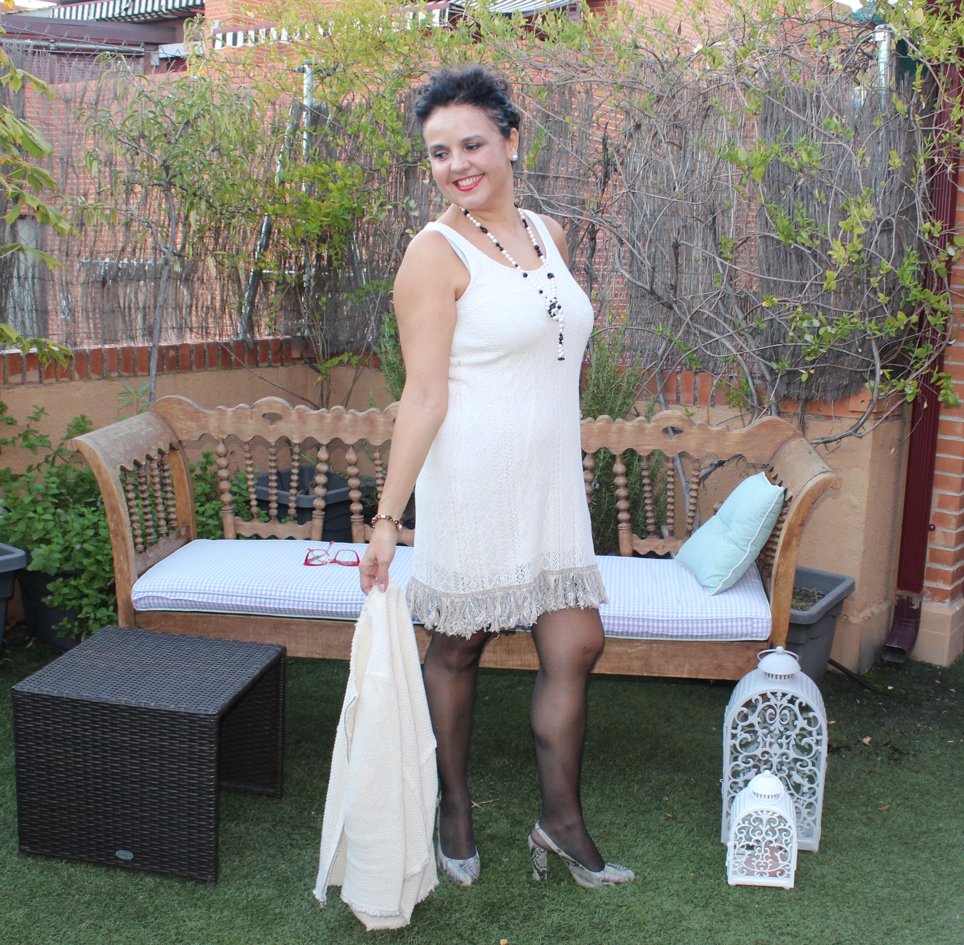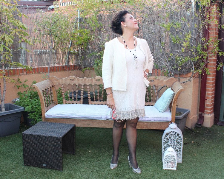 Como complementos: collar de perla anudado, medias pantys negras y salones destalonados. Este outfit es ideal para una comida de empresa, o para ir a la oficina de lunes a jueves, porque como ya sabéis los viernes se puede llevar una vestimenta más relajada.