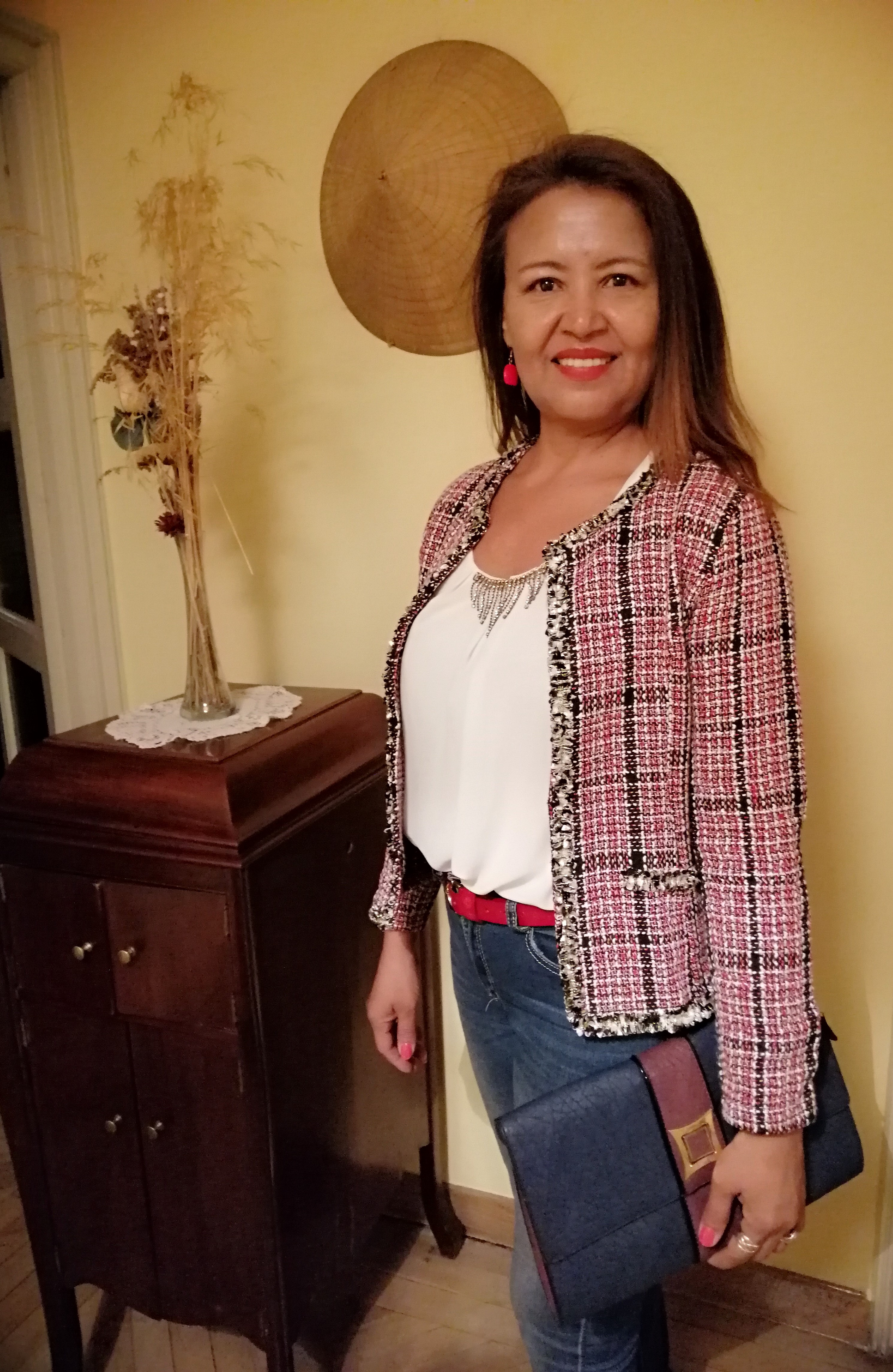 Chaqueta rosa y vaquero: