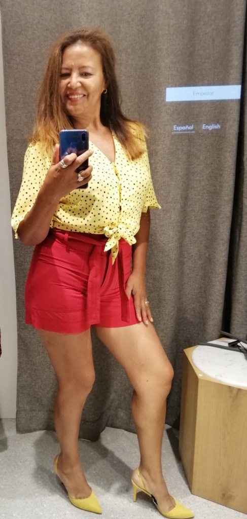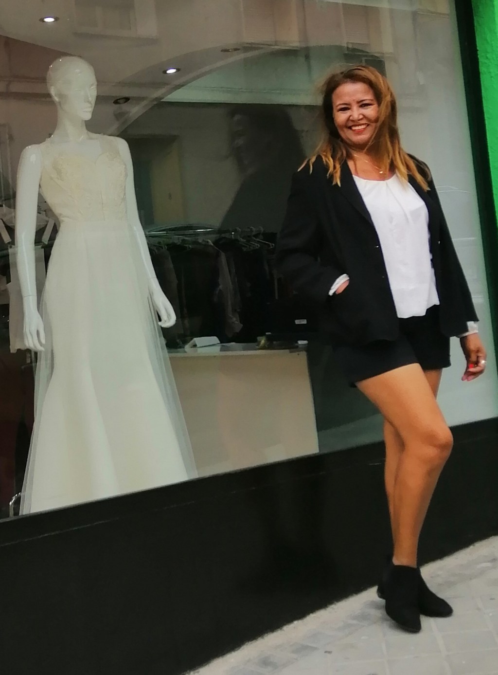 Para esta visita elegí un look con una americana, y pantalón corto, (total look negro); de calzado llevo unos botines negros, y blusa blanca.