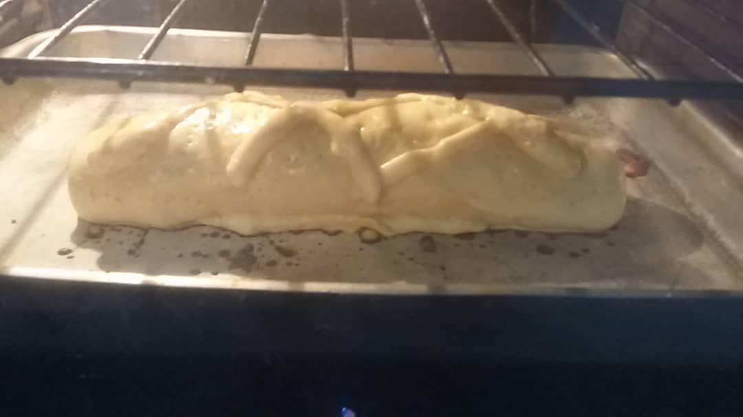 Pasado el tiempo de reposo, cubrir el pan con la mezcla de la Yema de huevo y leche, esta le da un color dorado a la presentación.