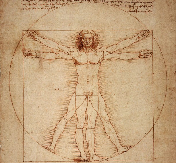 No podríamos hablar de la belleza renacentista sin mencionar a Leonardo da Vinci quien dedicó buena parte de su Tratado de pintura a expresar las proporciones más armónicas entre todas las partes del cuerpo con el Hombre de Vitruvio. En él, el ombligo era el punto central natural del cuerpo humano y el centro de la circunferencia y del cuadrado en el que se inscribe el cuerpo del hombre extendido. En este dibujo Leonardo Da Vinci representa las proporciones que podía establecerse en el cuerpo humano. Esta proporción refleja la máxima belleza y perfección, es decir la belleza divina. Para Leonardo, el hombre era el modelo del universo y lo más importante era vincular lo que descubría en el interior del cuerpo humano con lo que observaba en la naturaleza.