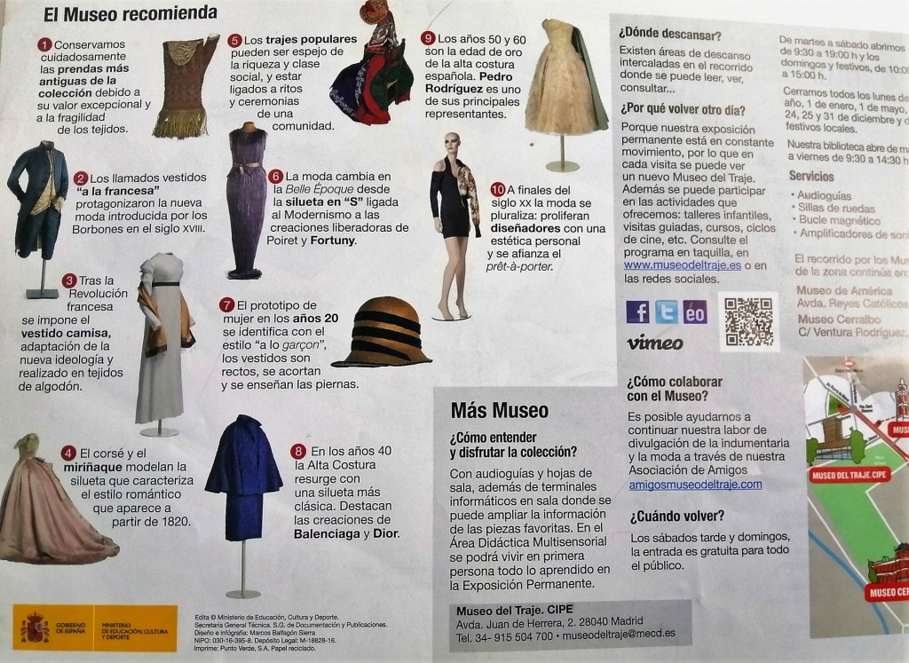 En Madrid se encuentra el Museo del traje donde se conserva cuidadosamente las prendas más antiguas de la colección debido a su valor excepcional y a la fragilidad de los tejidos.