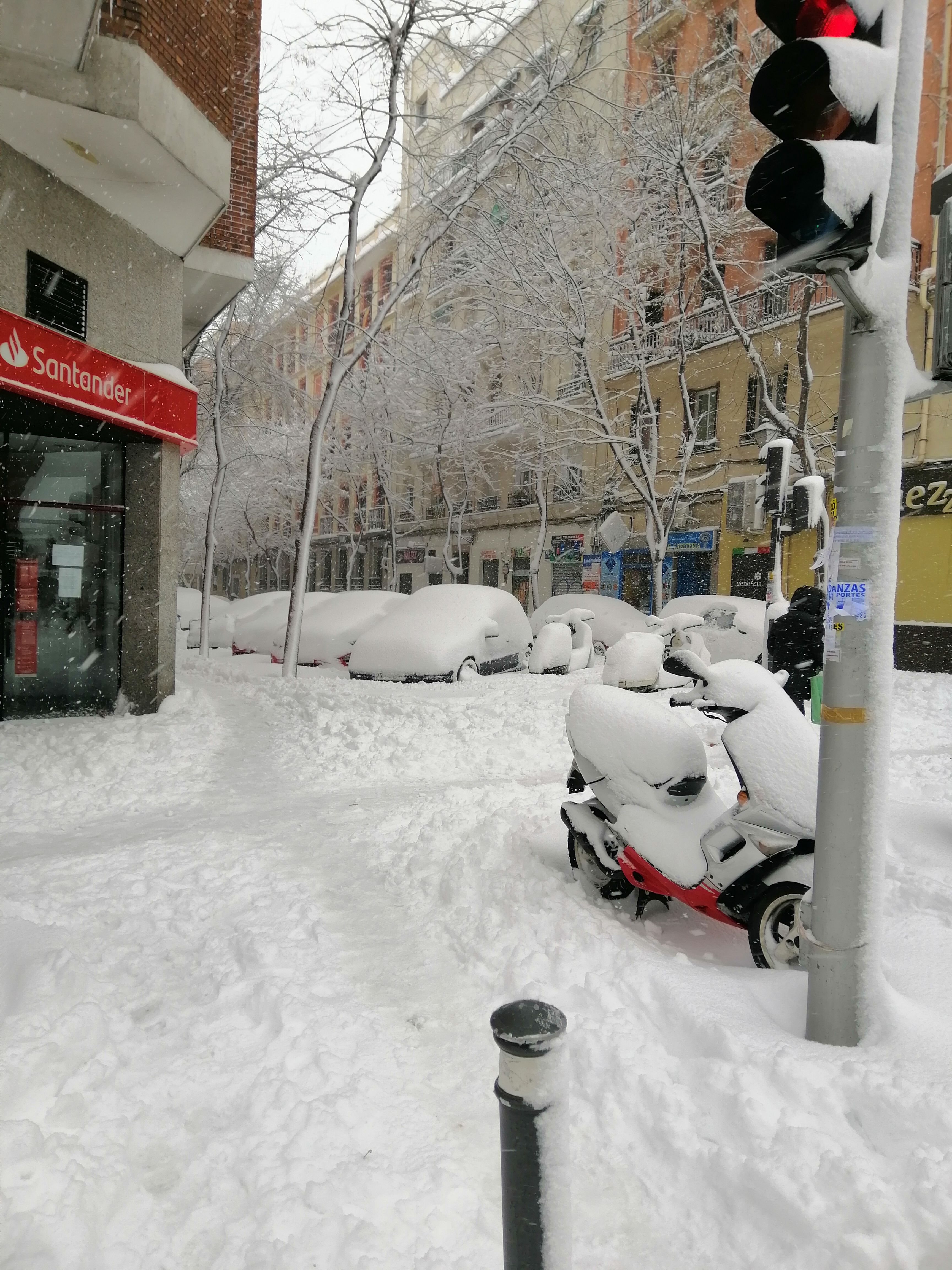 Tengo en Madrid cerca de siete años y nunca pensé ver esto; ayer sábado amaneció la ciudad teñida de blanco con imágenes para la historia.