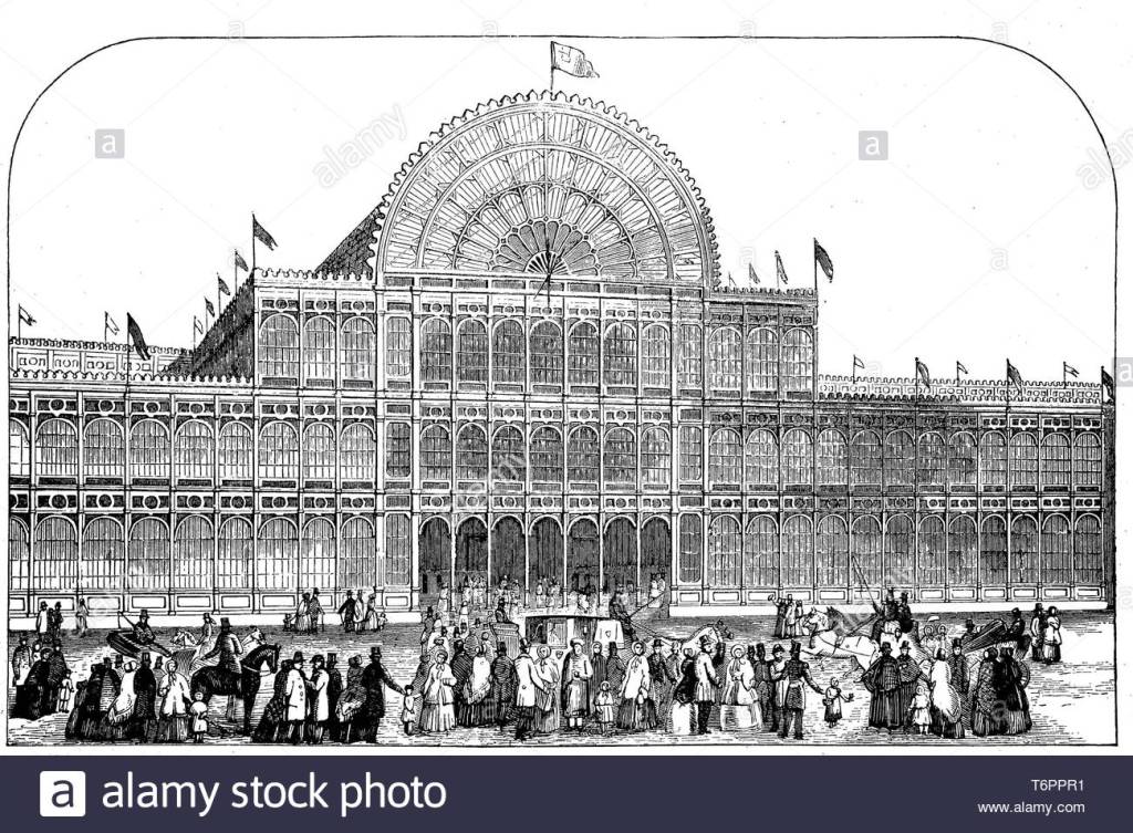 La exposición tuvo como sede principal el hoy desaparecido Crystal Palace, obra de Joseph Paxton realizada en hierro y cristal. Fue en este edificio donde se usaron, por primera vez las vitrinas de vidrio: los visitantes podían ver los productos expuestos a través del cristal, pero, a la vez, este los alejaba de él, lo que estimulaba su deseo de poseerlo.