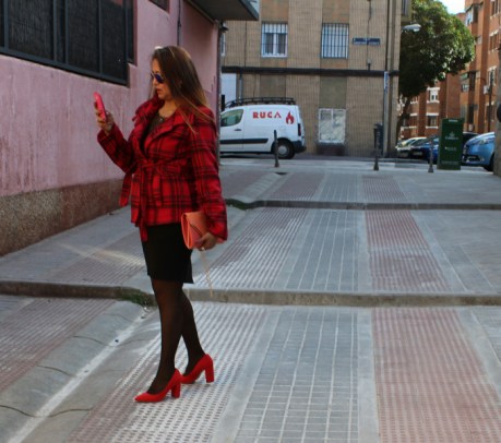 5 Look con abrigo atado de cuadros y falda tubo: Los abrigos clásicos cortos con faldas tubo quedan fenomenal. Completa el look con un jersey y de calzado puedes combinarlo con unos salones o botines de aguja.