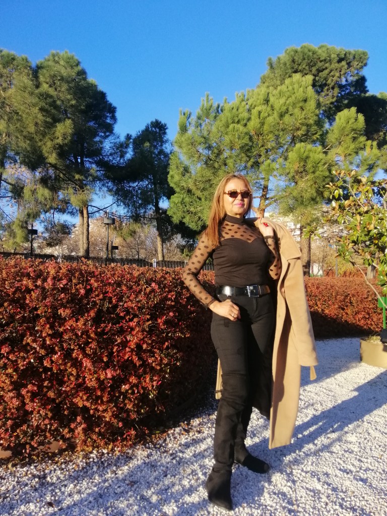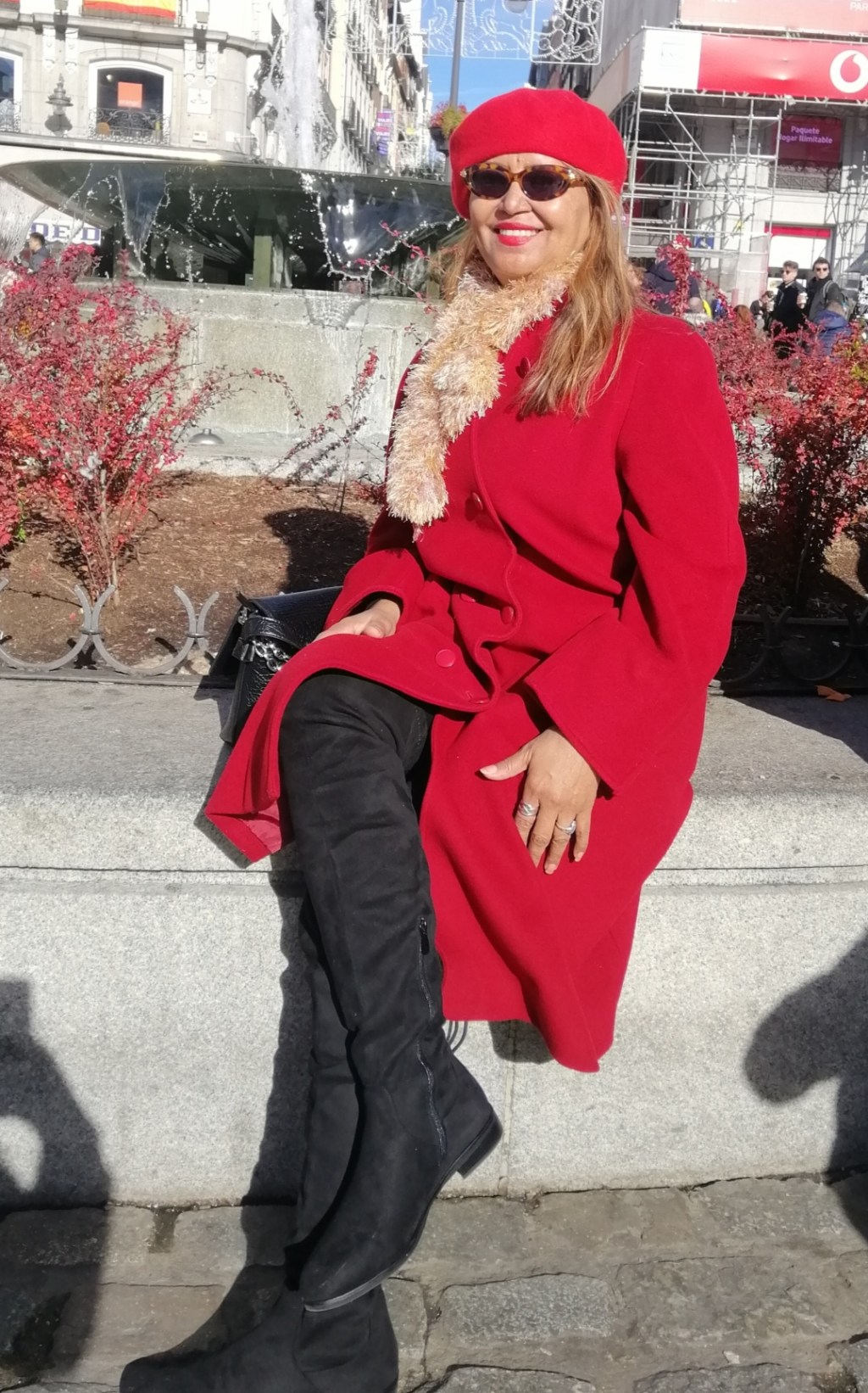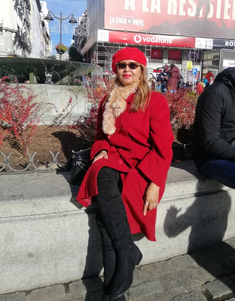 El primero de mis look es con un abrigo rojo con boina a juego y combinado con botas negras y bufanda de pelos beige y para potenciar más el look una gafas vintage marrón. Este look me encanta porque el rojo, como sabéis empodera y más alegre que el rojo no hay, y alegría es lo que necesitamos en estos tiempos.