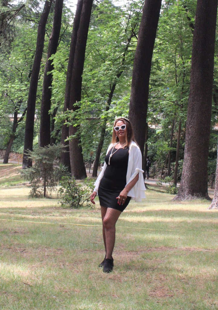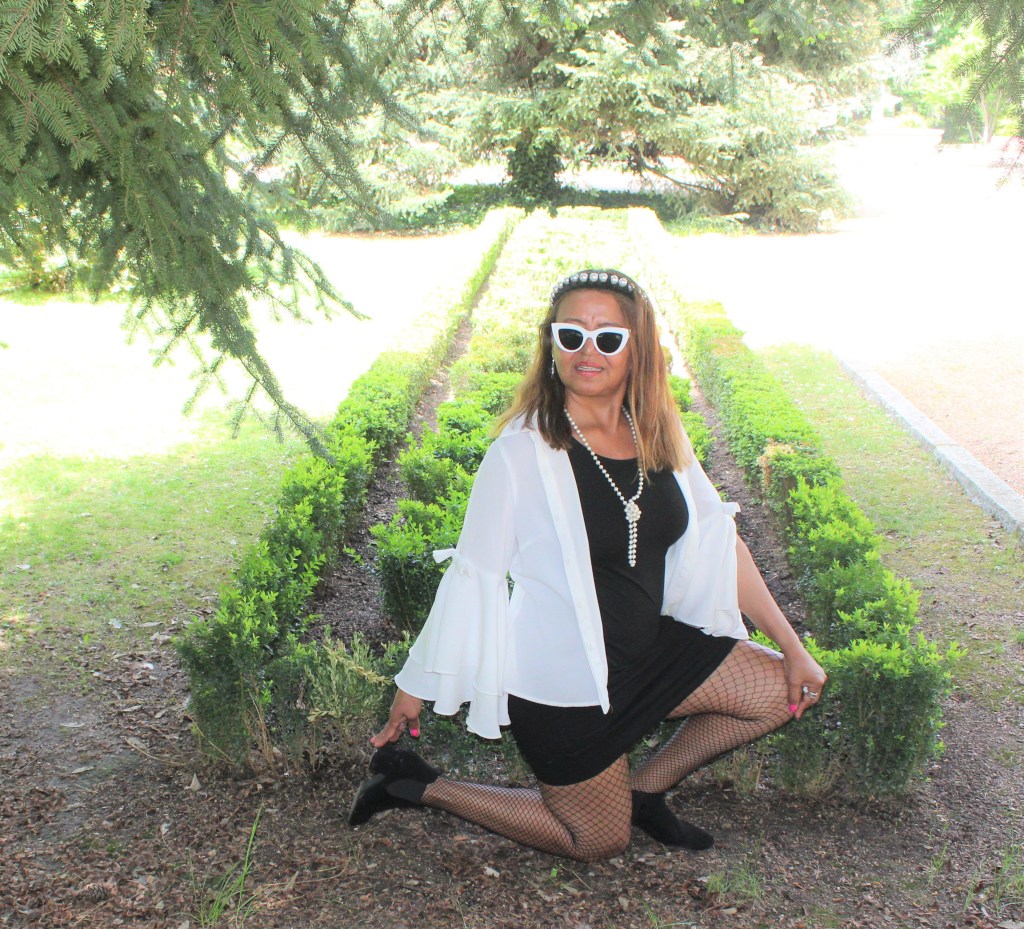 Ahora paso a describirles mi look que por cierto me encantó como quedarón las fotos las hicimos en el Campo del Moro, uno de los tantos parques que se necuentran en Madrid. Para este dia elegi un vestido negro corto, medias de maya negras, camisa blanca de mangas acampadas, de complemento un collar de pelar anudado y una diamdema de perlas, de calzado unos botines negros, con los colores por excelencia de Carl Lagerfeld, ¿Qué os parece?, por cierto ya pronto tendré a la venta en mi tienda online todos mi look.