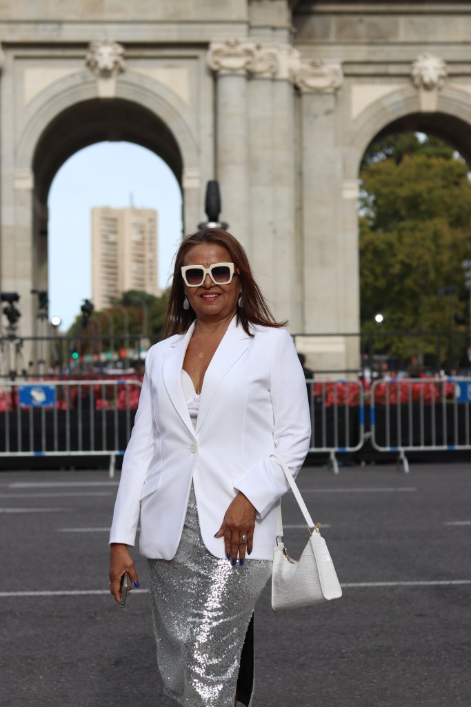 El poder del blanco y plata: un look que irradia confianza.
