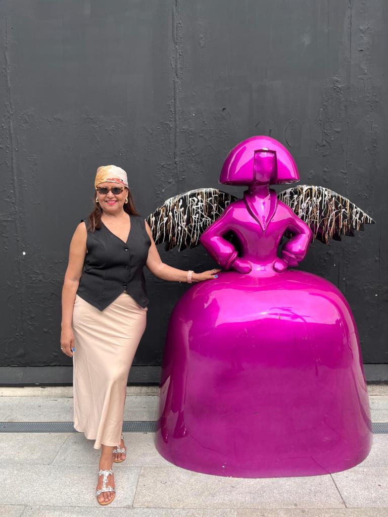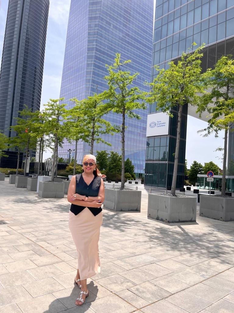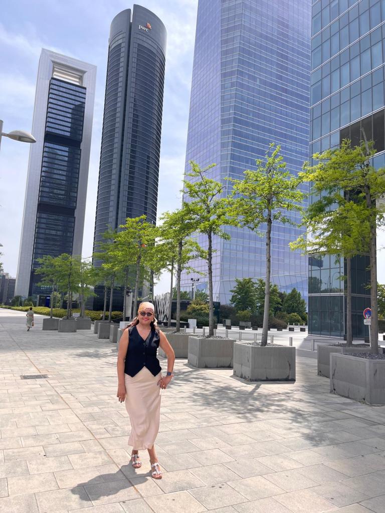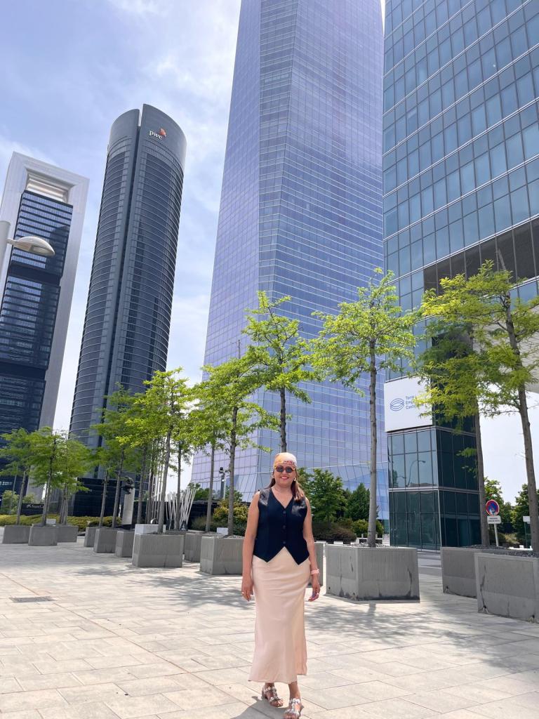 ¿Alguna vez has tenido una de esas piezas en el armario que, con solo tocarlas, te transportan? Para mí, la falda de satén es una de ellas. Su textura fresca, su caída perfecta y ese brillo discreto pero elegante son una declaración de intenciones en sí mismos. Hoy quiero compartir contigo un outfit que se ha convertido en uno de mis favoritos para días especiales (¡o para convertir un martes cualquiera en especial!). Es la combinación perfecta entre lo clásico y lo personal: falda satinada, chaleco estructurado y, mi sello inconfundible, un pañuelo en la cabeza.